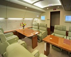 | | | Divulgação |  | | | | Interior do novo avião presidencial, Santos Dumont. |