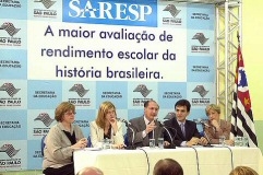 A escola pública estadual está melhorando numa velocidade importante. Essa foi a avaliação do governador Geraldo Alckmin após a apresentação, pelo secretário da Educação, Gabriel Chalita, dos resultados do Sistema de Avaliação de Rendimento Escolar do Estado de São Paulo - Saresp 2003, nesta quarta-feira, dia 23. A avaliação é feita anualmente, desde 1996, pela Fundação Carlos Chagas, e tem como objetivo obter indicadores da evolução dos alunos e gerar subsídios para eventuais correções de distorções e implantação de programas que possam promover melhorias na qualidade do ensino. "O objetivo não é criar um ranking, saber qual escola é melhor ou pior, mas verificar a situação do ensino público estadual, aluno por aluno", ressaltou o governador. O secretário destacou ainda que o Saresp não substitui as avaliações diárias em sala de aula, mas é realizado para avaliar e nortear as ações da pasta. Para Alckmin, o Saresp mostra que não é verdade que a escola pública seja ruim ou que possa estar piorando. "Essa comparação simplista com escolas particulares, na qual a escola particular é um sonho enquanto a pública é horrorosa, tem de ser analisada sob o contexto das famílias. Se pegarmos uma família na qual os pais tenham curso superior, a criança tenha oportunidade de fazer cursos fora da escola, tenha começado a ler cedo e acesso a atividades culturais, como teatro, por exemplo, temos uma situação. Outra coisa é pegar uma família na qual o próprio filho traz os pais para fazer supletivo ou alfabetização de adulto e adolescentes que, às vezes, precisam trabalhar. São realidades distintas. O fato é que a escola pública está melhorando numa velocidade importante", disse. Todos os dados obtidos pelo Saresp estão disponíveis no site da Educação O Saresp avaliou o desempenho de 2,85 milhões de alunos do Ensino Fundamental e 1,42 milhão do Ensino Médio. O estudo apontou que 75% dos alunos da 1ª série do Ensino Fundamental estão alfabetizados. Na 2ª série, esse índice chega a 90%. Já na 3ª e 4ª séries do Ensino Fundamental, 75% e 79% dos alunos, respectivamente, tiveram índices de acerto superior a 50%. Na prova de redação, 57% dos alunos da 3ª série obtiveram desempenho superior à média cinco na prova. Na 4ª série, 68% alcançaram nota superior a cinco na prova de redação. No segundo ciclo do Ensino Fundamental, 59% dos alunos de 5ª série; 67% dos da 6ª série; 60% da 7ª série; e 77% da 8ª série acertaram mais de 50% das questões da avaliação. Na redação, as médias foram superiores a cinco para 62% dos alunos da 5ª série; 68% para os da 6ª série; 75% na 7ª série; e 70% para os da 8ª série. No Ensino Médio, 80% dos alunos da 1ª série, 88% da 2ª e 70% da 3ª séries acertaram mais de 50% das questões propostas pelo Saresp. Na prova de redação, os índices com média superior a cinco foram: 67% na 1ª série; 76% na 2ª série; e 78% na 3ª série. Todos os resultados obtidos pela avaliação do Saresp estão disponíveis no site da Secretaria da Educação.