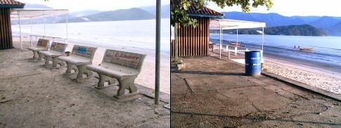 Deram sumiço nos ridículos bancos de propaganda que Eduardo César (DEM...) mandou colocar, de costas para o mar, em toda a extensão do calçadão da avenida Leovigildo Dias Vieira, no Itaguá. Mais uma prova de que a administração do "nunca antes (e de novo jamais)" é useira e vezeira em fazer "experiências" com o dinheiro público. Os "técnicos" da Prefeitura empregam indefinidamente o método "tentativa e erro" sob o consentimento dos fiscalizadores do erário municipal que fazem vista grossa para tudo. O compadre fundamentou a retirada dos bancos: - O contrato de publicidade venceu. Não houve renovação. Os bancos foram retirados. Justo. Justíssimo!