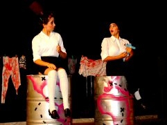| | | Divulgação |  | | | | Duas Idiotas sentadas cada qual no seu barril, um dos espetáculos da mostra de esquetes. |