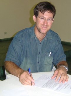| | | Emilio Campi |  | | | | Jairo dos Santos (PT), em reunião com o grupo Ubatuba Viva nesta quarta-feira (27), assinando compromisso. |